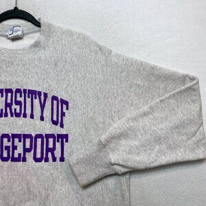 VINTAGE University Of Bridgeport Sweatshirt Mens L Gray Reverse Weave Pullover