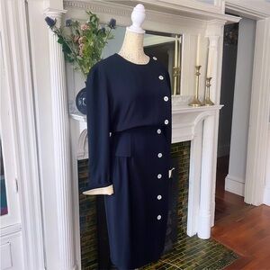 VINTAGE VALENTINO MISS V 100% Wool Navy Side Button Midi Dress Size 10