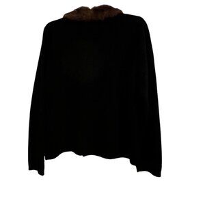 VINTAGE VALERIE STEVENS WOOLMARK MERINO WOOL BLACK CARDIGAN Faux fur Around The Collar Can be removed Mother-of-pearl-Black Buttons