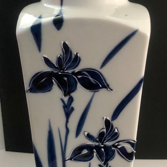 VINTAGE VASE. Contemporary style in blue and white. No markings.