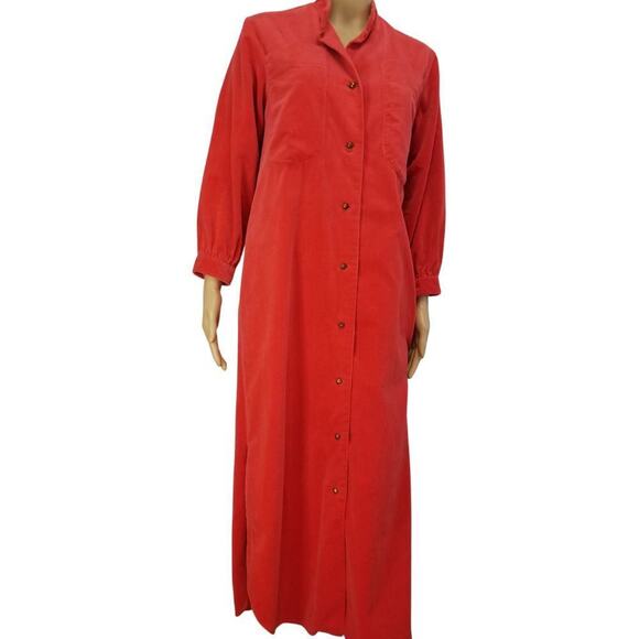VINTAGE VELVET Boho Long Red Jacket Floor Length Side Slits Gold Button SZ Small