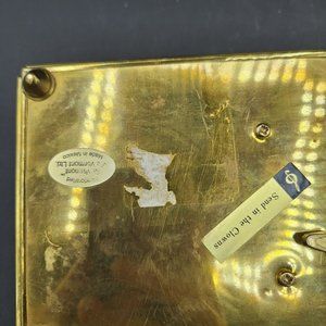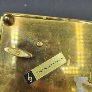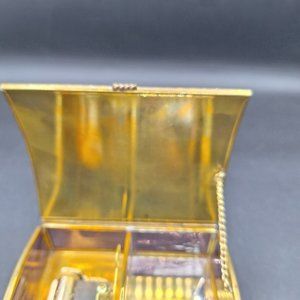 Beautiful vintage Via Vermont LTD glass and brass music/jewelry box featuring a little girl sitting amongst the flowers and a bird perched on a branch. 4 sides of the box are transparent purple glass while the inside houses the music piece and a compartment that is mirrored on the bottom. There is a chain attached to hold the lid. The music plays when the lid is open. One bottom sticker reads: Handcrafted Via Vermont Ltd. Made in Mexico, and the other sticker reads: Send in the Clowns. There looks to have been another sticker at some point, but there is nothing left but residue. This piece is preowned and free from chips or cracks, however, the brass could use a good polish. Please see photos as they are part of the descprition. Smoke free home. Reasonable offers considered.