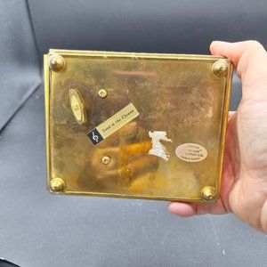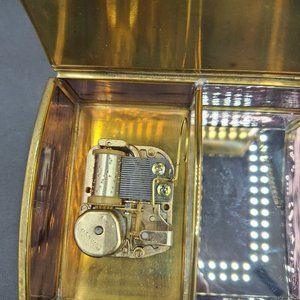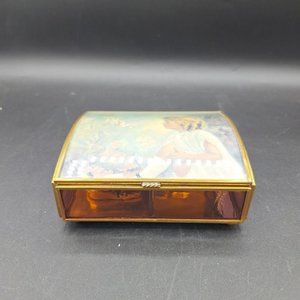 VINTAGE VIA VERMONT LTD GLASS & BRASS GIRL FLOWERS BIRD MUSIC JEWELRY BOX
