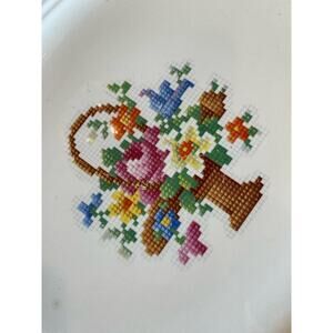 VINTAGE VICTORY BY Salem China Co Cross Stitch Floral Bouquet Platter