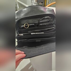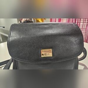 VINTAGE VITTORIA NY leather crossbody front flap bag In Black, Gold Hardware.