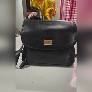 VINTAGE VITTORIA NY leather crossbody front flap bag In Black, Gold Hardware.