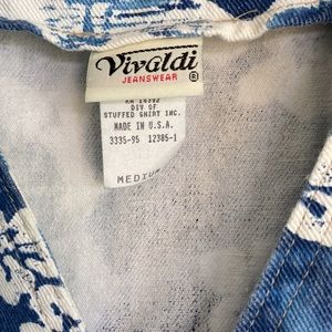 VINTAGE VIVALDI denim vest, sz. M, blues w/wh. flowers, 4 buttons. $8