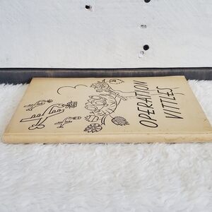 Vintage VTG Operation Vittles January 1949 Hardcover Cookbook. Compiled by the American Women in Blockaded Berlin. Published by Deutscher Verlag, 1st Edition. Each page contains a recipe, illustration, personal anecdote & reproduction of signature of each recipe contributor. Black & white photos of airlift & childrens drawings. Wonderful piece of history, clash of customs, difficulty cooking without electricity. 100 pages. All binding and pages intact. Water marks and discoloration on front and back cover but that just adds to the vintage age.