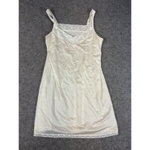 VINTAGE Vanity Fair Mini Dress Womens Size 38 Ivory Lace Trim Lingerie Babydoll
