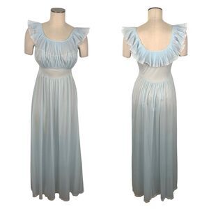VINTAGE Vanity Fair Pale Blue Nylon Nightgown Maxi Slip Flounce Sleeve S / 32