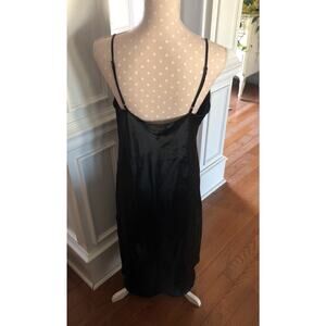 VINTAGE Vanity Fair Satin Nightie Slip Dress Size 38 Large Black Side Slits