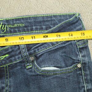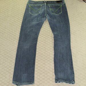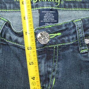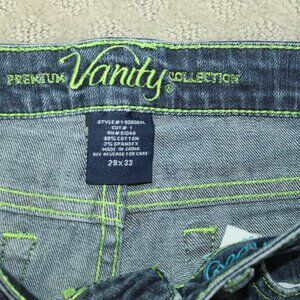 VINTAGE Vanity Kennedy Wm 29x33 Low Rise Slim Leg Blue Jeans w Green Stitching