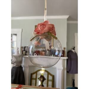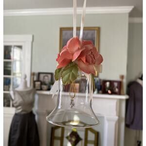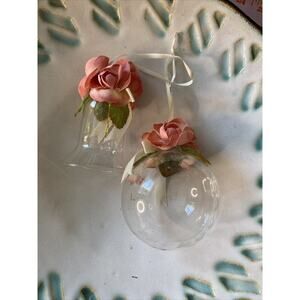 Vintage Victorian Hand Blown Glass Ornaments / Roses Set Of 2 Bell Ball.