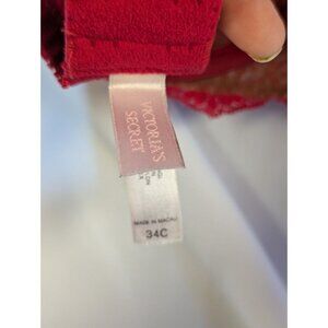 VINTAGE Victorias Secret 34C Red Lace Sheer Balconette Unlined Bra