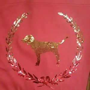 VINTAGE Victoria's Secret SEQUIN BLING Love Pink Bling hoodie Sweater BEDAZZLED