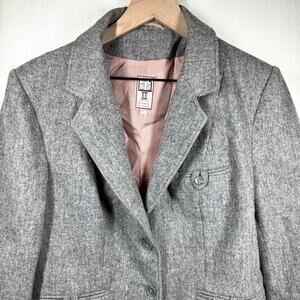 VINTAGE Virgin Wool Blazer Size 13/14 Dark Academia Collegiate Feminine Tweed