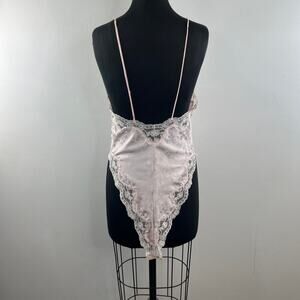 VINTAGE Voe Mode Pink Teddy Bodysuit Lace Sweetheart Spaghetti Strap Medium M
