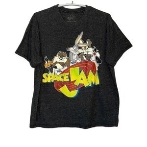 Men’s WARNER BROS. VINTAGE (1996) SPACE JAM Black Confetti Shirt Size XXL (50-52)