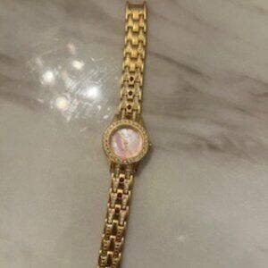 VINTAGE WOMEN,S WATCH MAIN LINE GOLD/PINK AND RED BEADS CLASP BRACELET BAND