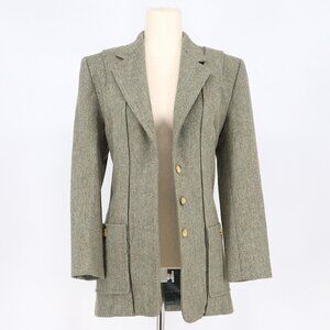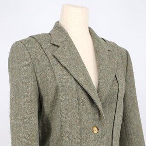 VINTAGE WATHNE 100% Wool Tweed Jacket Blazer Green Brown Size 6