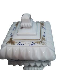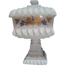 VINTAGE WESTMORELAND MILK GLASS LIDDED WEDDING BOX CANDY PEDESTAL DISH 1950