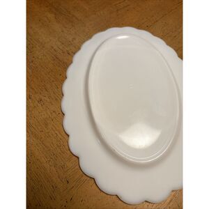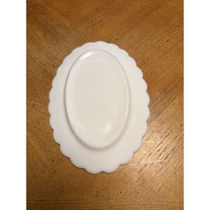 The Vintage Westmoreland White Milk Glass Paneled Grape Saucer/Platter is a charming piece of dinnerware perfect for serving or displaying a variety of items. With its elegant oval shape and intricate grape pattern, this medium-sized platter adds a touch of vintage charm to any occasion. Made of white milk glass, this unique piece is sure to make a statement in your kitchen or dining room.
