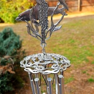 Elegant wind chime with dolphin design. Perfect for adding a soothing sound to your space.