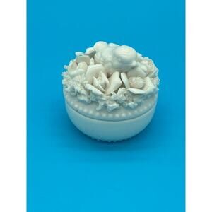 VINTAGE WHITE DELICATE PORCELAIN BIRD TRINKET BOX