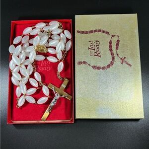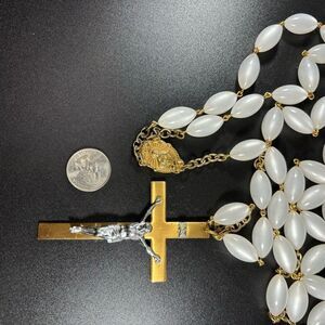 VINTAGE WHITE MOONSTONE BEAD THE LAST ROSARY 47" FUNERAL Casket CRUCIFIX