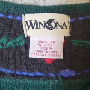 VINTAGE WINONA HAND EMBROIDERED WOOL CARDIGAN SIZE M GREEN RED