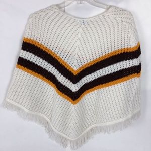 Vintage 60"s 70's knit Crochet Chevron Boho chic hippie Fringe Poncho Cape Shawl sweater with fringe hem