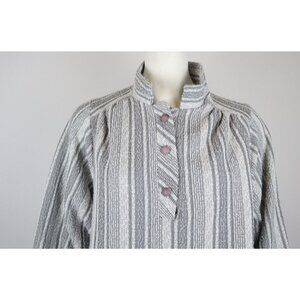 VINTAGE WOMEN S GRAY STRIPED TEXTURED TOP - SIZE L - SHORT SLEEVE