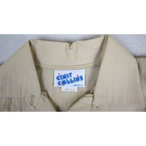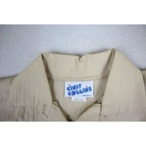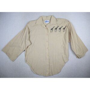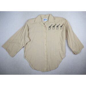VINTAGE WOMEN'S BEIGE GIRAFFE PRINT 3/4 SLEEVE BUTTON-UP TOP - CINDY COLLINS - S