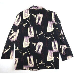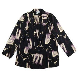 VINTAGE WOMEN'S BLACK PRINT OVERSIZED UNLINED BLAZER JACKET - JOANNA - SIZE L