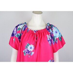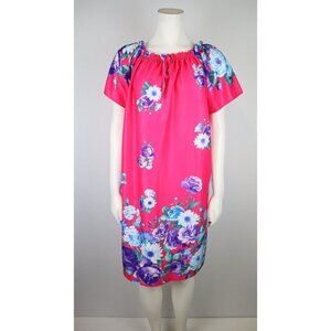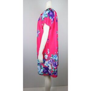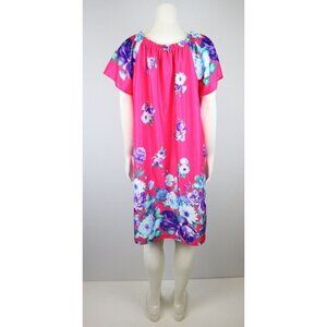 VINTAGE WOMEN'S BRIGHT PINK FLORAL PRINT HOUSEDRESS MUU MUU - SIZE S/M - POCKETS