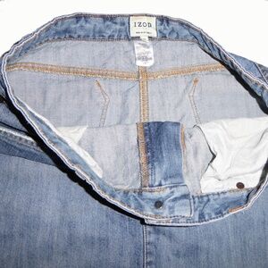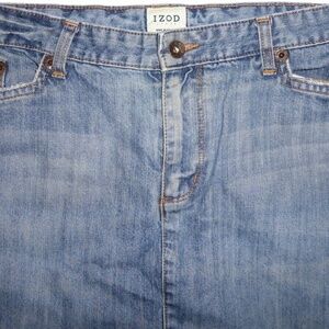 VINTAGE WOMENS DENIM SKIRT IZOD FADE BLUE 5-POCKET STYLE 19" LONG 12 L