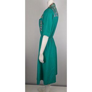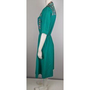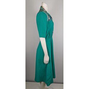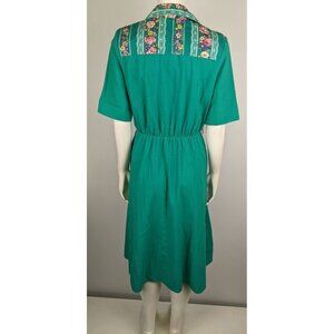 VINTAGE WOMEN'S GREEN FLORAL PRINT SHIRT DRESS - TAP&CO - SIZE 6P