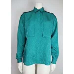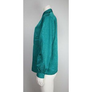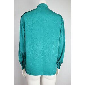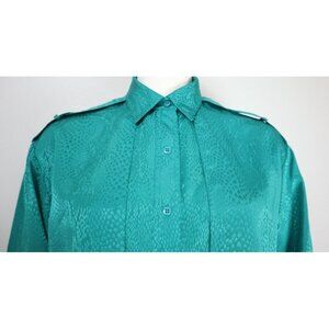 VINTAGE WOMENS TEAL GREEN SILKY TEXTURED BUTTON-UP BLOUSE - ALEXANDRIA - SIZE 12