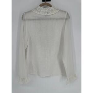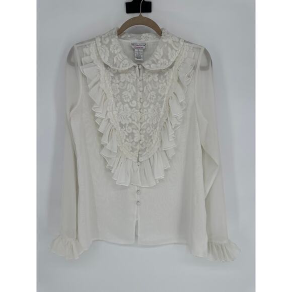 VINTAGE WOMEN’S VICTOR COSTA WHITE LACE COLLAR & SHEER RUFFLE DESIGN SIZE S