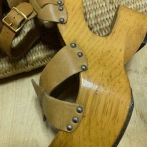 Material: Leather Upper - Wood Platform