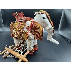 VINTAGE WOODEN MARIONETTE ELEPHANT PUPPET FROM THAILAND-HAND PAINTED