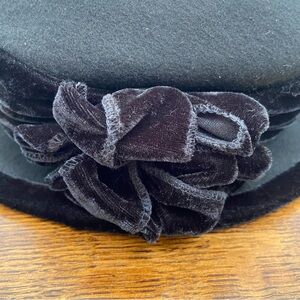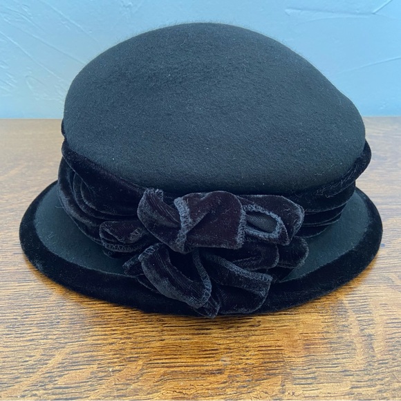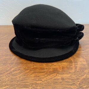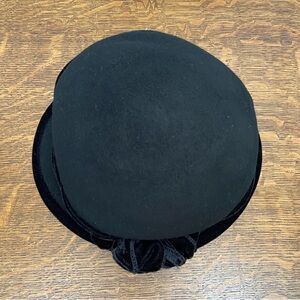 VINTAGE WOOL BLACK WOMENS BOW RIBBON BOWLER CLARA BOW RETRO HAT