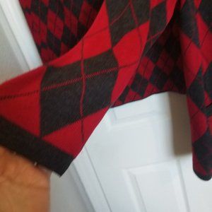 By Theo Miles, VINTAGE knit acrylic and wool ARGYLE Cardigan and Skirt set! High quality, beautifully edged and finished. Charcoal and red. Amazing vintage condition. No holes, pilling, pulls, stains... In Phoenix, no moths, mold, or much opportunity to wear it.