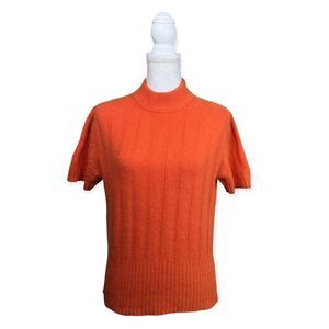 VINTAGE WOOL SHORT SLEEVE MOCK TURTLENECK NINA CHARLES KASPER ORANGE SWEATER L