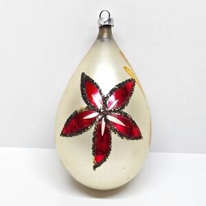 Vintage MCM mercury glass poinsettia flower ornament . Made in West Germany. Measures about 4" tall. Some wear and fading to paint due to age, but no chips or cracks. Smoke-free home.