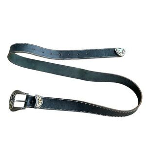 VINTAGE Western Silver Concho Leather Stitch Belt