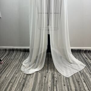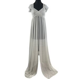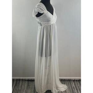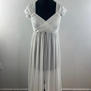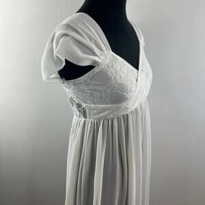 VINTAGE Womens White Nightgown Sleep Dress Short Sleeves Split Front Skirt V-Neckline