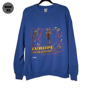 VINTAGE Wile E. Coyote: Europe I Feel Good! USED Sweatshirt (XL, Looney Tunes)