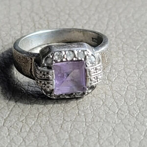 VINTAGE Womens 925 Purple Stone Crystal STERLING SILVER RING SIZE 9