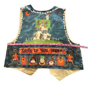 VINTAGE Women's Halloween Haunted House Reversible Quilted Handmade Vest Size XL